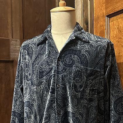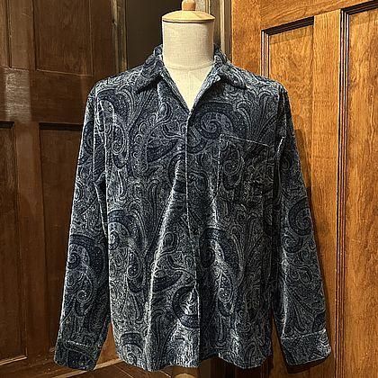 PAISLEY PATTERN INDIGO VELVETEEN OPEN SHIRT