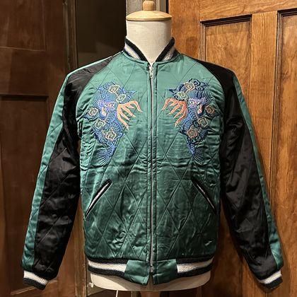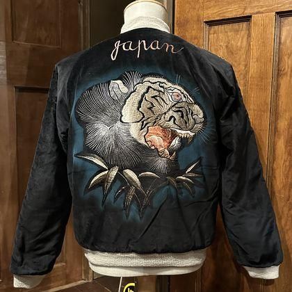 Mid 1950s Style Velveteen ¡ß Acetate Quilted Souvenir Jacket ¡ÈStencil Paint¡É ¡ÈTIGER HEAD¡É ¡ß ¡ÈEAGLE¡É